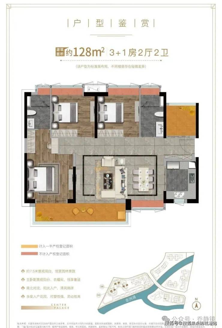建面约128㎡四房两厅两卫:这是改善家庭的品质之选。在延续优秀格局的基础上,空间更为阔绰。独立的餐厅区域,家庭宴请从容不迫;连接客厅的景观阳台,视野更佳。四房配置提供了更多的可能性:可以是二胎家庭,可以是带上父母同住,也可以轻松打造专属的书房、影音室或健身房,满足家庭成员多元化、品质化的生活追求。