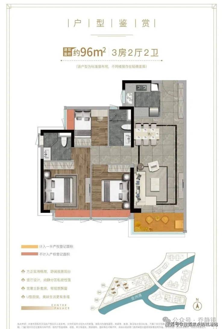 房源情况:本次推出的是A、B地块的商品房,共规划8栋住宅。产品为带装修交付,主力户型为建面约96平方米的三房两厅两卫,以及建面约128平方米的四房两厅两卫。