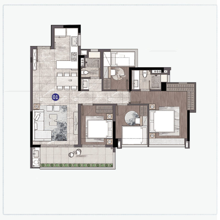 而建面约127㎡户型,在设计上,可谓将这种优势拉到极致。