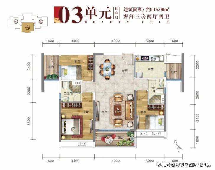 产品设计独特:115平三房和130平四房户型设计合理,空间利用率高。