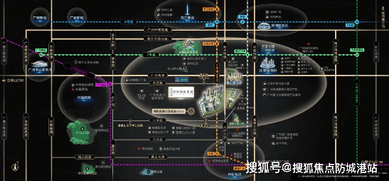 发达的路网:拥有 5 横 5 纵交通路网,5 横为新光快速、华南快速、番禺大道、市广路、东新高速;5 纵是汉溪大道、南大干线(建设中)、广明高速、东环路、兴业大道。开车出行便捷,出门即达新光快速,10 分钟可达万博,25 分钟可达琶洲,30 分钟可达珠江新城,满足居民在广州主要商务区的通勤需求。
