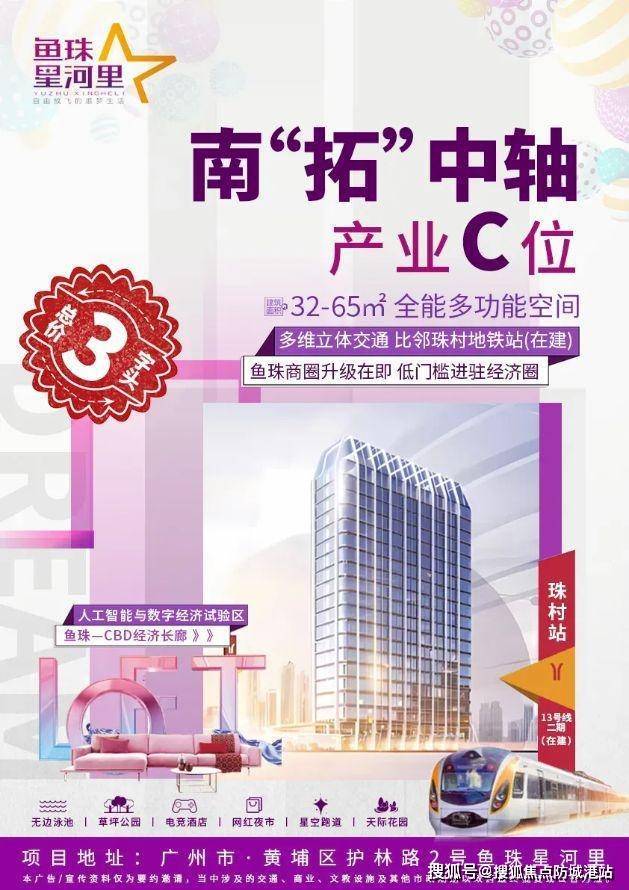 鱼珠・星河里由广州开源置地有限公司开发,位于广州市黄埔区护林路 2 号(天河珠村东侧)。项目产权性质为 40 年,属商业用地(B1)/ 商服用地(B2),占地面积约 3.6 万㎡,建筑面积约 2.8 万㎡,绿化率约 30.1%,总层高 19 层,4 梯 29 户,精装交付,现楼发售。规划约 1000 户,户型面积为 4.5 米复式(32 - 35㎡、38㎡、60 - 65㎡)。由中汇文旅集团负责物业,提供 6 年托管经营,保底租金 2200 - 4800 元 / 月(每年递增 5%) ,物管费用双匙 3.8 元 /㎡/ 月,Loft 5 元 /㎡/ 月。