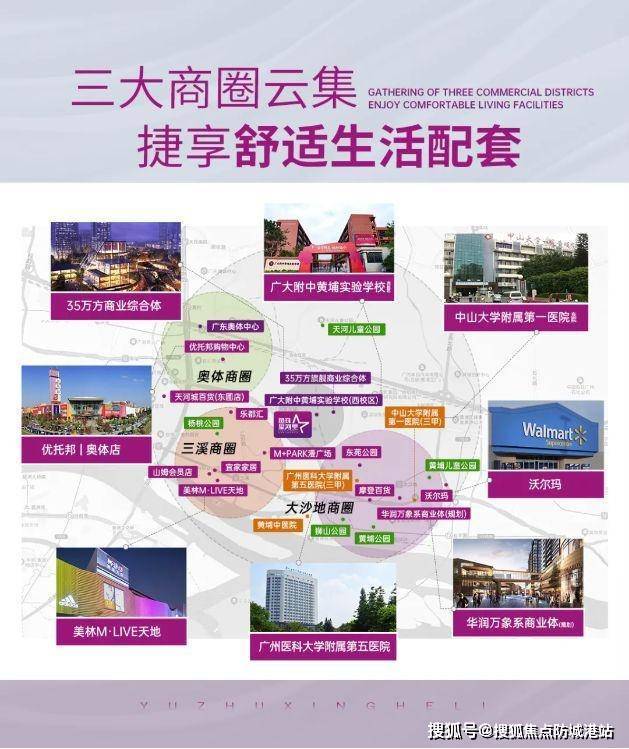 商业配套丰富。项目自带 24 小时文旅商业中心,东面规划在建黄埔第三个万达广场 - 茅岗万达(暂定名),预计总建面约 35 万㎡,总投资约 40 亿元,与项目形成商业互补。周边还有美林天地、宜家家私、山姆会员店、乐都汇、港航中心等,商业氛围浓厚,满足居民日常购物、休闲娱乐需求。