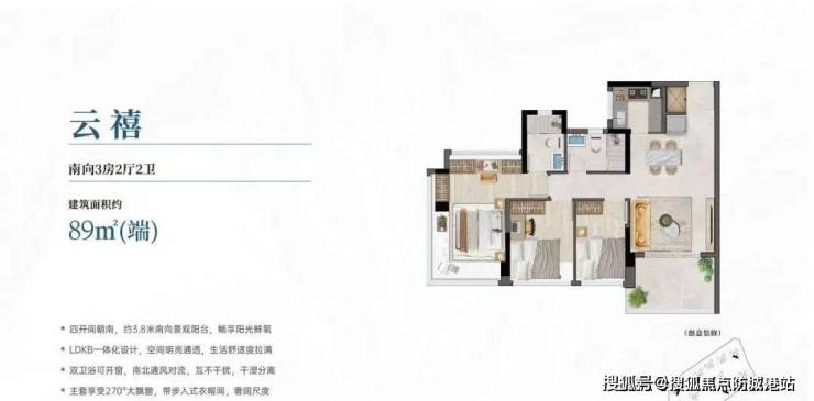 89㎡户型:总价380万起(首付114万);