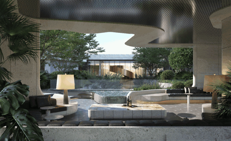高端建筑美学:外立面采用微弧流线、无柱转角、格栅屋顶设计以及全包裹金属玻璃等元素,赋予建筑现代感与美感兼具的外观特征。园林景观则由JTL加特林国际顶尖设计团队操刀,打造出错落有致的酒店度假风立体园林,营造出高品质的居住氛围。