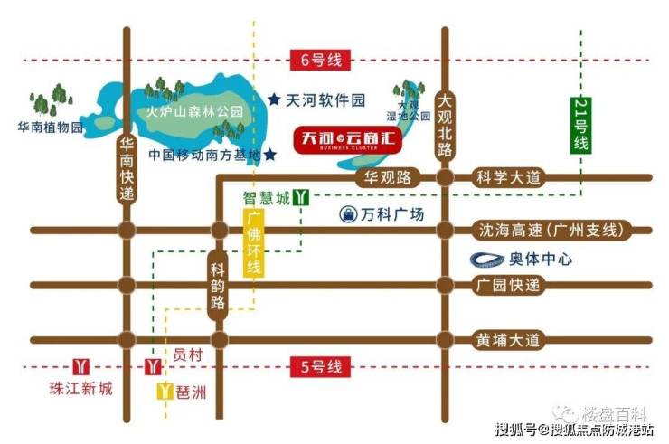 项目坐拥天河智慧城核心区位,地处广州市天河区软件路与高唐路交接处,紧邻地铁21号线天河智慧城站,属于天河智慧城核心商务区核心板块,与珠江新城中央商务区形成南北遥相呼应、全国独一无二的“双核驱动”格局,是广州未来发展的引擎与创新中心。天河智慧城作为广州“十四五”规划重点发展的三大科创枢纽之一,2023年区域GDP突破2800亿元,年均增速达8.3%,远超全市平均水平,目前已成为广州科创产业集聚的核心载体,而项目作为区域内重点打造的综合体项目,依托板块发展红利,实现居住、办公、创业、休闲的全场景覆盖,区位价值不可复制。