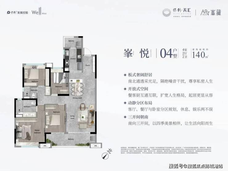 项目主打建面约98-140㎡三至四房,小高层设计(11-16层),得房率超85%。户型采用“大面宽+短进深”设计,主卧套房、南北双阳台、U型厨房等细节提升居住体验。现房交付,即买即住,免去期房等待风险。