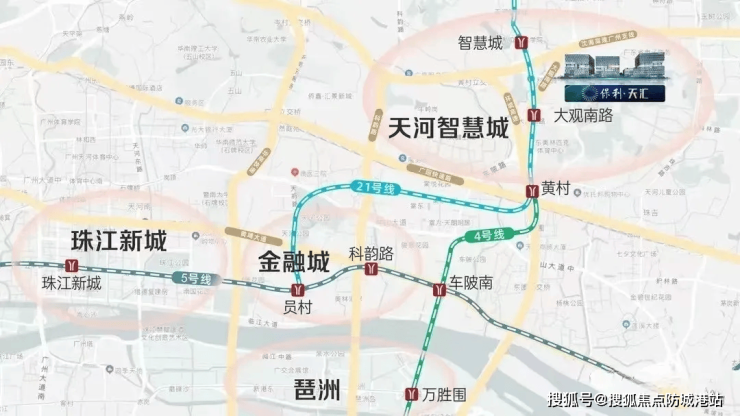 地铁出行方面,项目距离地铁21号线大观南路站约1.2公里,步行耗时约15分钟,可通过接驳电车、公交快速抵达地铁站。从大观南路站出发,一站换乘4号线可前往金融城、琶洲,4站至员村换乘5号线直抵珠江新城,轻松通达广州核心商圈,日常通勤高效便捷。