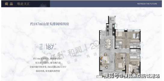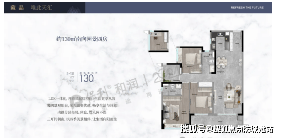 高端改善户型(约160-179㎡四居室):该户型定位高端改善,采用大面宽、短进深设计,南向超大面宽可达12.8米,搭配全景落地窗,室内采光与视野极佳。LDKG一体化方厅设计,近50㎡社交空间,可满足家庭派对、亲友聚会等多元场景需求。主卧套房配备270°飘窗阅读角、独立衣帽间与三分离卫浴,星级酒店行政套房既视感;部分户型配备南向静谧老人房,配备独立卫生间,适配多代同堂家庭需求。