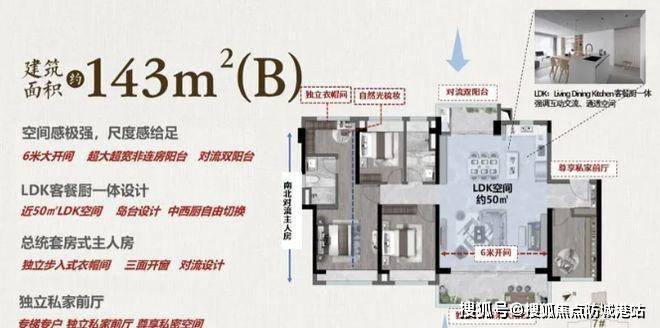 143㎡奢级产品:该户型有着超高的使用率,LDK 空间宽敞舒适。玄关首创步入式储藏室,收纳功能强大。6 米大开间非连房阳台搭配双对流生活阳台,不仅通风采光极佳,还带来奢级的空间享受。主人房自带独立衣帽间,并且拥有三窗设计,尺度感十足,为居住者带来超舒适的体验。