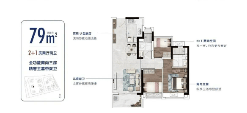 最小户型:南向三房,总价仅需180多万,非常适合预算有限的刚需家庭。