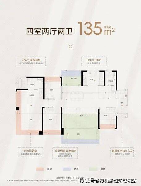 135㎡改善四房:单边位设计,采光通风*,适配*置换需求。