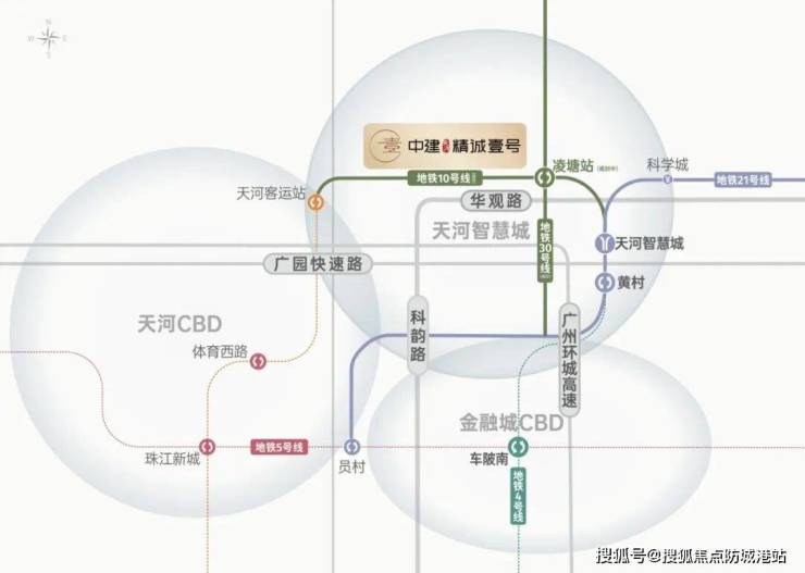 中建精诚壹号地理位置优越,属于天河智慧城板块,该区域是广州第三中轴的重要组成部分,也是粤港澳大湾区科技创新走廊的关键节点。项目毗邻科韵路和华观路,靠近华南快速和沈海高速出入口,交通便利。