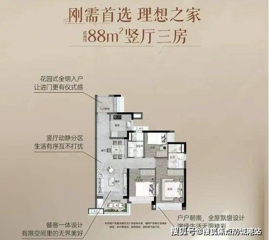 竖厅布局:南北对流,老人小孩不打扰,无尘归家式入户花园。