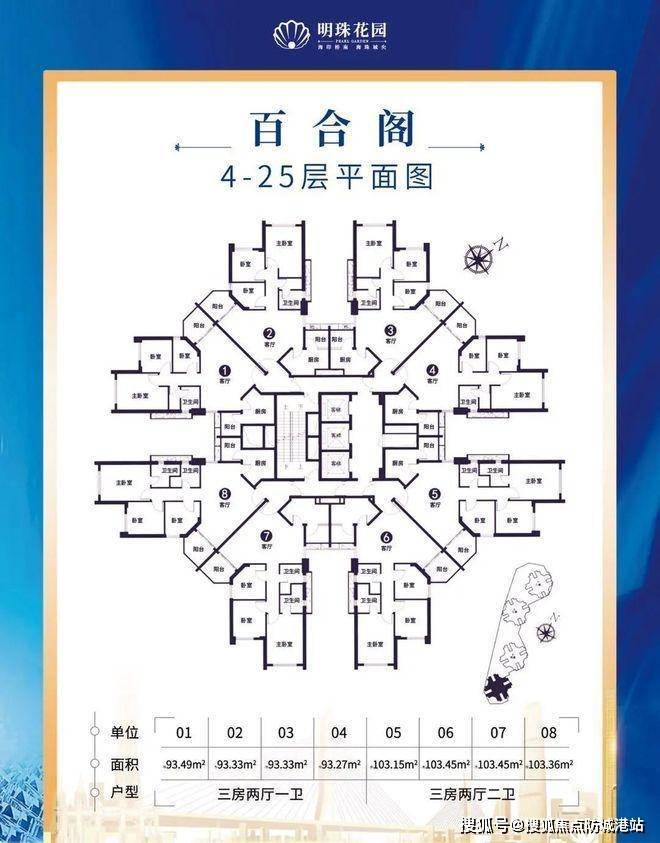 明珠花园推出 93 - 103㎡的舒适三房户型,满足不同家庭的居住需求。
