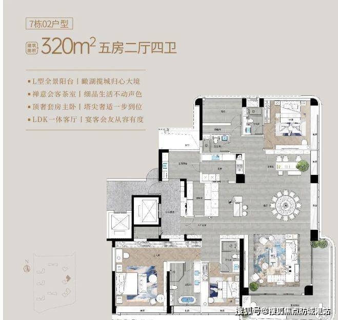 约 320㎡户型是映月湖壹号的顶级产品,代表着极致的奢华与舒适。全明私家电梯厅,面积更大,功能更全,为业主提供尊贵且私密的入户空间,同时可作为小型储物间,存放不常用的物品。3.3 米的层高,让室内空间显得格外开阔,彰显出大气与尊贵。