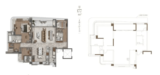 项目户型涵盖 107-177㎡三至四房,分高低区设计,梯户比与户型定位匹配,满足不同改善需求: