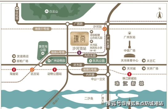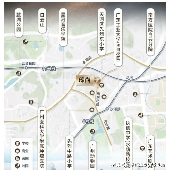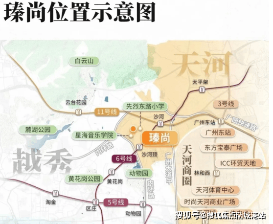 项目位于天河先烈东横路 38 号(白云山脚下、星海音乐学院旁),地处天河、越秀、白云三区交界,属于市中心核心圈,地段优势显著。交通出行极为便利:距离地铁 6 号线沙河顶站 B 出口仅 500 米,1 站至沙河站换乘广州大环线 11 号线(串联全城),2 站至区庄站换乘东西大动脉 5 号线,3 站到淘金、6 站直达北京路与珠江新城,通勤效率拉满;周边路网成熟,可快速接驳内环路、广园快速路及城市主干道,自驾出行同样便捷,适配天河、越秀、白云等区域上班的改善群体。