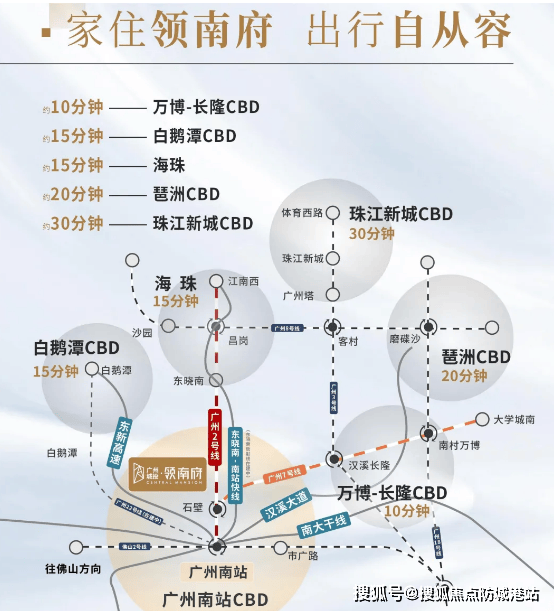 项目坐落于南站核心区,距 2/7 号线石壁站仅约 300 米,步行 3 分钟即可抵达。通过 7 号线 1 站直达广州足球公园,4 站抵达万博商圈;衔接 22 号线、广佛环线等交通路网,1 小时通达湾区各城,8 小时联动全国主要城市。周边 3 公里内分布南站小学、石壁二村幼儿园等教育资源,汉溪大道串联珠江新城、琶洲等多个 CBD,都市繁华触手可及。