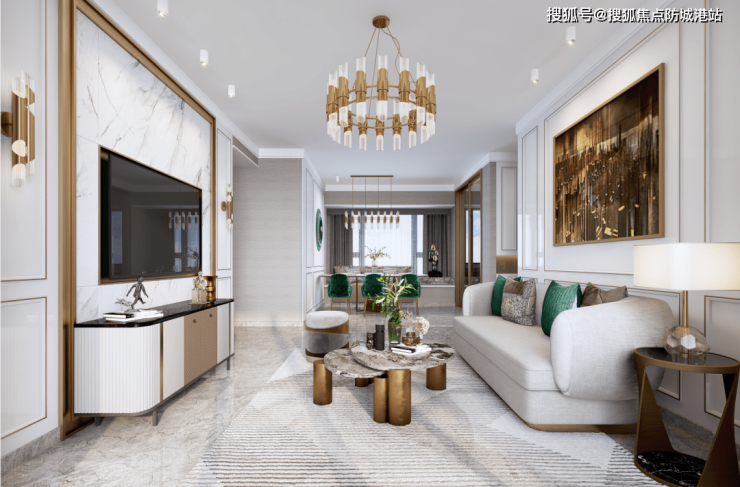 大气疏朗的会客空间彰显大家风范,餐客一体奢阔通厅格局,打破空间的禁锢,在这里,与家人共度美好时光,亦或是与朋友在客厅推杯换盏,谈天论地,拉近心与心之间的距离。