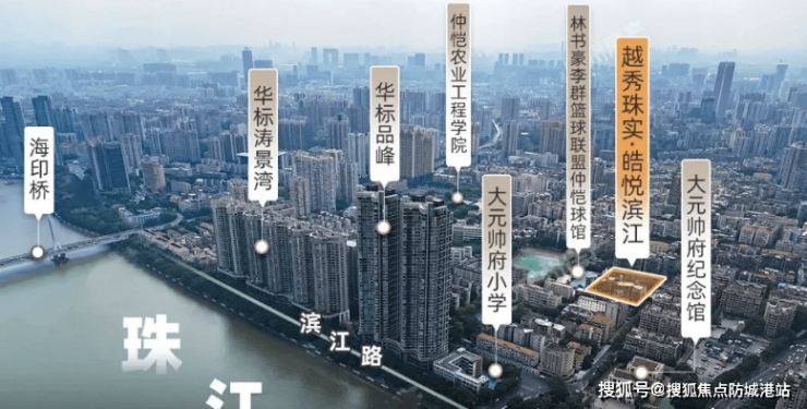 5. 越秀珠实·皓悦滨江雄踞城市的黄金地段 周边优渥配套一应俱全 教育资源丰富 幼儿园有海印南苑幼儿园 名都幼儿园等 小学有大元帅府小学 滨江东路小学等名校 初中有五中滨江学校 南武中学等百年名校环绕 虽然项目没有配建学校 教育方面存在一定不确定性 但在招生上属于第一组别 具有一定竞争力 商业配套上 1公里范围内坐拥万国奥特莱斯 万联购物中心 君汇天地 海港城 海印广场等 满足日常购物需求 3公里范围内 南有滨江岭南文化商圈 江南西 - 太古仓商圈 中大时尚消费商圈 广州塔 - 琶洲世界级商圈4大海珠商圈 北有沿江路商圈 北京路 - 海珠广场商圈 中华广场商圈 东山口商圈4大越秀商圈 尽享繁华商业氛围 医疗方面 广医一院 二院 珠江医院 海珠区妇幼 广州市十字会医院等众多医疗机构环绕 构建起“五分钟生命线”的老城医疗保障 为业主的健康保驾护航 无论是日常生活的购物 休闲 还是孩子的教育 家人的健康保障 在这里都能轻松实现 即刻畅享繁华生活主场