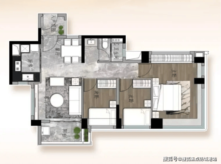 92㎡三房两卫:公区尺度升级,客厅开间超3.8米,营造开阔感,适合追求品质的小家庭。