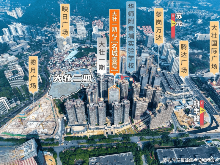 大壮名城二期是由实力房企大壮集团打造的城市核心改善型住宅项目,位于广州市黄埔区科学城板块核心地带。项目总规划共六栋住宅楼,主打88至143平方米的三至四房户型。与一期相比,二期整体在布局、景观、建筑高度及使用效率方面全面升级,并进一步强化社区的居住舒适度和空间利用率。产品以实用主义与改善理念相结合,定位为科学城中高端人群的优选置业标的。项目采用围合加蝶形楼设计,有效避免视觉遮挡,同时优化通风与采光表现,致力于打造黄埔区又一宜居标杆。