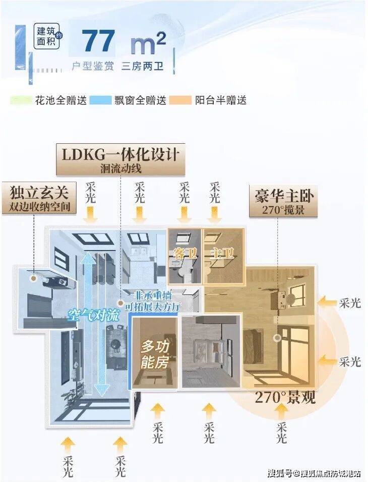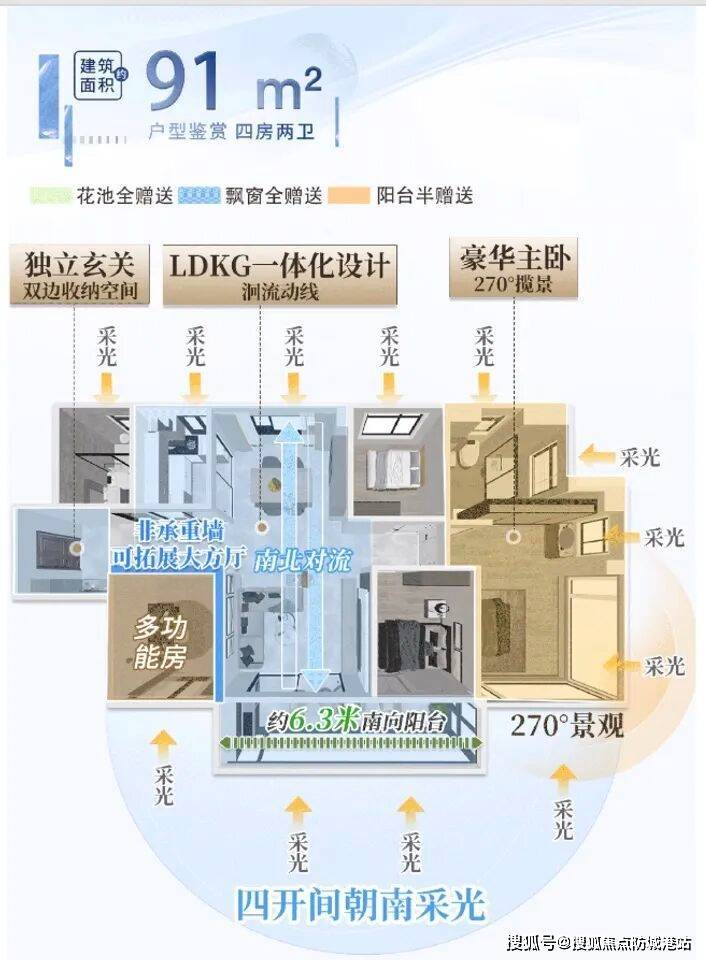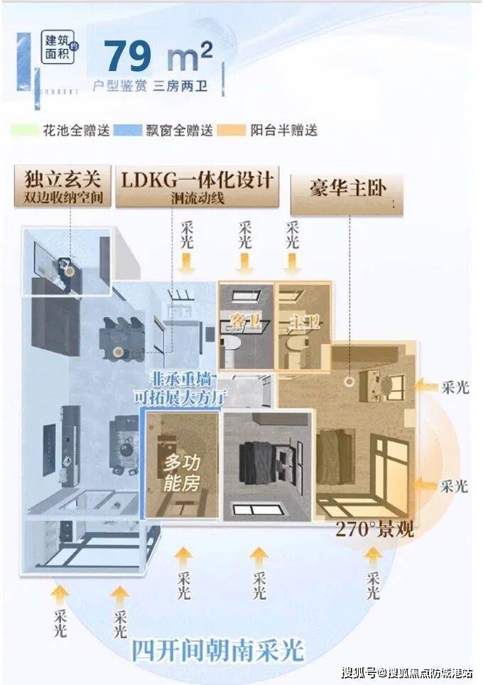 怡璟湾主推77-91㎡新规三至四房,全盘最高约120%使用率,小户型实现“越阶改善”。77-79㎡三房两卫遵循“无两卫不三房”理念,南向四开间、全屋空气对流、全明空间格局,干湿分离双卫生间,堪称首改全能户型。88-91㎡四房两卫,四开间南向、约6-6.3米南向阳台、豪华主卧套房+270°环幕全景窗,尺度堪比120㎡+大户型。整体户型遵循“风光定位系统”,保证每一户最佳采光通风及“推窗见天光、卷帘无对视”景观视野,主卧均为270°环幕景观,窗外繁华城景尽收眼底。户型注重功能灵活与实用主义,LDKB一体化设计、独立入户玄关、百变空间多种享受,真正做到“同等面积多一房”。在新世界花地湾改善市场,怡璟湾以新规120%使用率+全南向户型+保利精工,完美平衡总价与空间,户型价值位居板块顶尖。