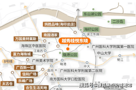 越秀·桂悦东晓直接对口海珠外国语实验中学附属小学,学校实力过硬,周边业主基本都是高净值人群,生源质量有保障。中学方面,摇号组别为第一组,包括五中本部、六中、外国语、南武等优质中学。项目周边密集分布了超过18所中小学和大学,构成了南北走向的“学府路”,为孩子提供了优质的教育环境。