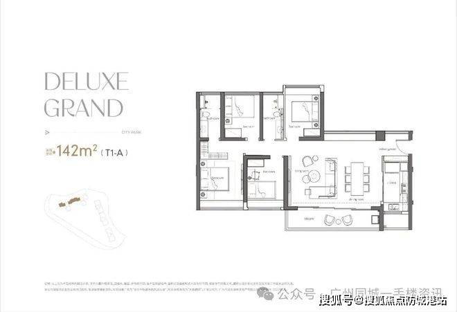 项目户型设计独具匠心。如建面约 142 平四房,横厅户型南北对流,客厅直通南向超宽景观阳台,采光面开到最大,8K 级清晰度的云山风光尽收眼底,开放式空间格局,适合家庭聚会、商务洽谈。传统竖厅户型格局方正实用,动静分离,采光通风优越,还配备入户花园、多功能房,阔绰主卧自带独立卫浴与衣帽间,带来定制般居住享受。目前主要在售 188㎡四房户型,为中轴楼王户型,可一览白云山山景和白云新城 CBD 城市景观,空间布局合理,得房率虽未明确提及,但从整体设计来看,应能满足高端居住需求。