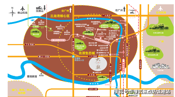 瑞璟大观位于佛山市北滘镇三洪奇三乐西路,紧邻佛山地铁3号线三洪奇站,开启了湾区1小时生活圈的新篇章。项目所在区域被“北滘生态城”规划所覆盖,享有成熟的配套设施。三高三主二铁一轨的立体路网环绕四周,让高效出行成为可能,进一步提升了该地区的居住价值。
