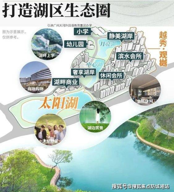 生活配套十分完善。商业规划对标新加坡圣淘沙滨湖商业体,沿湖打造约 1 万平商业体,满足日常消费与休闲需求。三公里范围内优托邦、天河城百货等商场云集,生活气息浓厚。社区提供完善医疗服务,2 公里内有三甲综合智慧型医院中山六院,附近还有多家医院,规划中的国际妇女儿童医院也将进一步提升医疗配套水平。周边山水资源丰富,三面环山,日月双湖与公园绿地环绕,居住环境宜人。