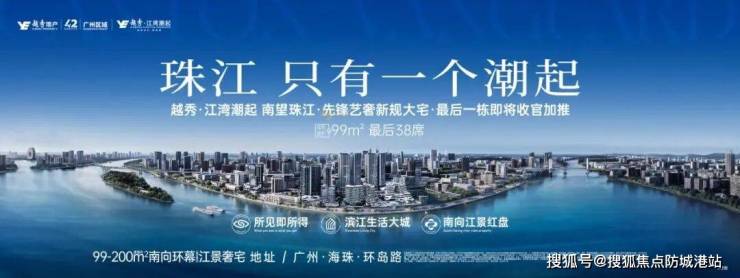越秀·江湾潮起作为越秀地产“先锋系”的首发之作,在售建面约99-200㎡新规全景奢宅。位居珠江后航道岸线,享有南面看江视野,三江交汇,坐拥约2.4公里(百度测距)浩瀚珠水美景。楼下约1.7万㎡滨江公园与环岛步道的实景开放,伴随约4 万㎡岭南海港汇开业在即与环岛路临时路即将贯通,率先呈现了集商业、生态、交通于一体的LWP滨江国际住区。家楼下约1200㎡双层会所,配置恒温泳池、健身房、先锋会客厅、瑜伽室、理疗室等配套,作为后航道难得的新规南向江景奢宅,越秀·江湾潮起即将收官加推,D2栋「江栖」组团建面约99㎡户型,板块在售唯一新规户型, 最后38席,即将封藏加推。