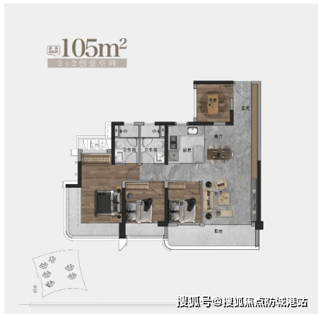 105㎡四房两卫(改善主力):西南 / 东北朝向,6.1 米巨幕阳台搭配 270° 环幕瞰景主卧,四开间朝南户型占比高,采光面达 12 米。餐客厅一体化设计,外接宽景阳台,主卧带步入式衣帽间,第四个房间可作为儿童房或长辈房,实测使用率达 104%,赠送面积约 6㎡,完美适配二孩家庭。
