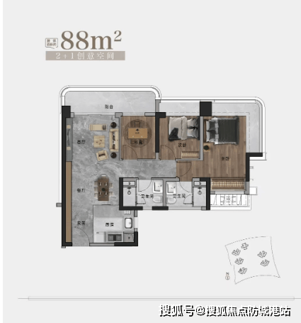 88㎡三房两卫(刚需首选):西北朝向,配备 5.7 米巨幕阳台与 270° 环幕瞰景主卧,LDKB 一体化设计提升空间利用率。主卧面积约 12㎡,带独立卫浴与大飘窗,次卧与书房空间灵动,满足三口之家日常所需,实测使用率达 102%,赠送面积约 4㎡。