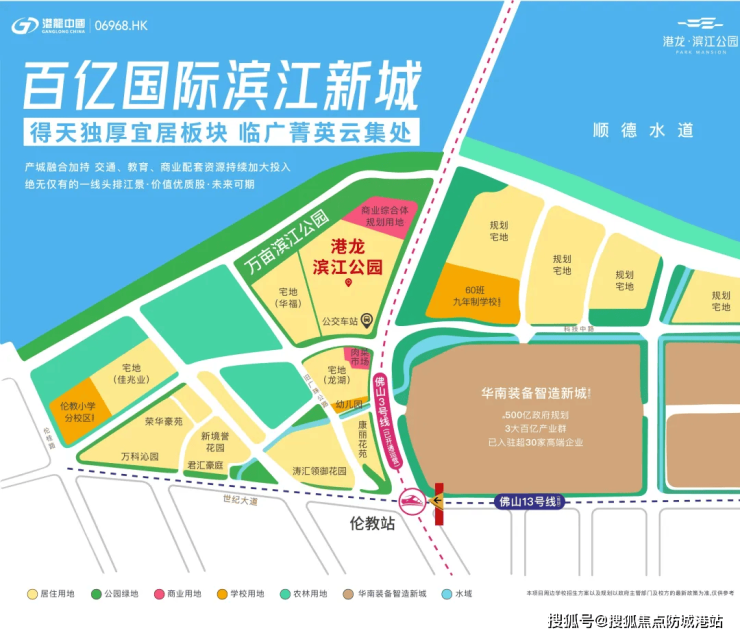 作为顺德的重要组成部分,伦教背靠顺德强大的经济实力。顺德已连续十年蝉联全国综合实力百强区之首,人口红利持续展现,形成了家用电器、机械装备、电子信息等八大主要行业,培育出碧桂园、美的等世界500强企业以及格兰仕、联塑科技等全国500强民企。强大的产业基础带来了充足的就业机会和人口流入,也为房地产市场提供了坚实的支撑。而港龙滨江公园所在的滨江新城,更是伦教重点打造的集生态休闲、文化运动、高端居住为一体的滨江国际住区,政府7亿投资加码教育,进一步提升了区域的宜居属性。