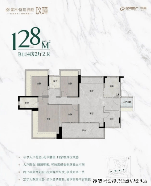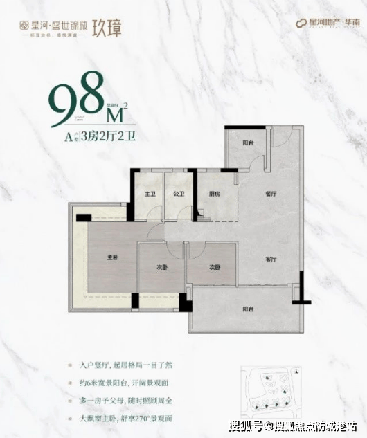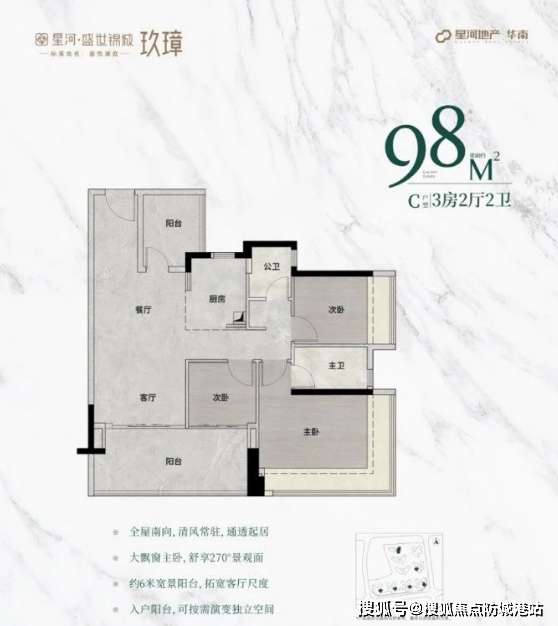 主朝向朝南,配备270°无柱飘窗,视野开阔,采光充足。