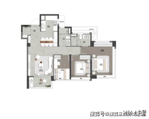 建面约 84㎡三房两卫:经典三房布局,户型方正,全明采光,满足三口之家或刚需家庭居住需求,空间紧凑实用,无浪费面积,功能分区清晰。