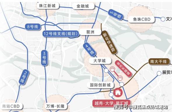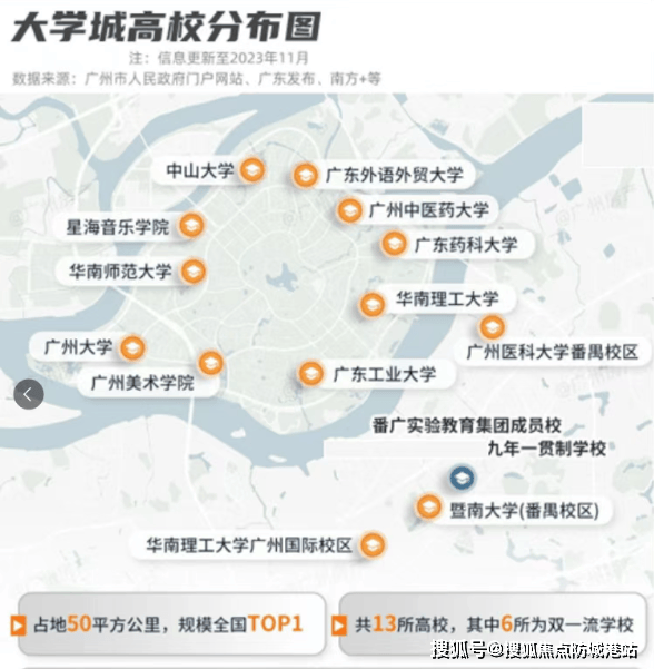项目地处琶洲以南,是番禺国际创新城新造板块的核心腹地。这里不仅是城市重点发展的战略区域,更是广州少有的“高校环抱型”居住高地。周边13所高等学府林立,包括华南理工大学国际校区、暨南大学番禺校区等顶尖高校,汇聚近20万师生群体,形成浓厚的人文氛围与高知社区生态。与如此优质的邻里为伴,不仅为孩子的成长提供潜移默化的熏陶,也为家庭营造出安静、文明、向上的生活环境。