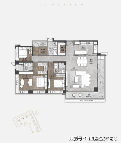 182平方米豪宅3房:入门隐藏式储物柜设计,增加功能性空间;LDK餐客厅一体化设计,实现交互式生活;超16米环绕式景观阳台,尽收中轴园景;宽奢主卧,超30平方米主套房,配备双飘窗和步入式衣帽间。
