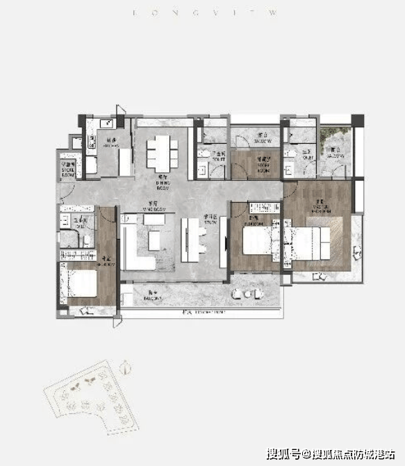 177平方米豪宅改善4房:独梯独户设计,归家仪式感强烈;拥有约8.9米观景阳台,可欣赏中轴岭南式园林景观;双主卧套房,大主套房超30平方米,L型飘窗通透明亮。