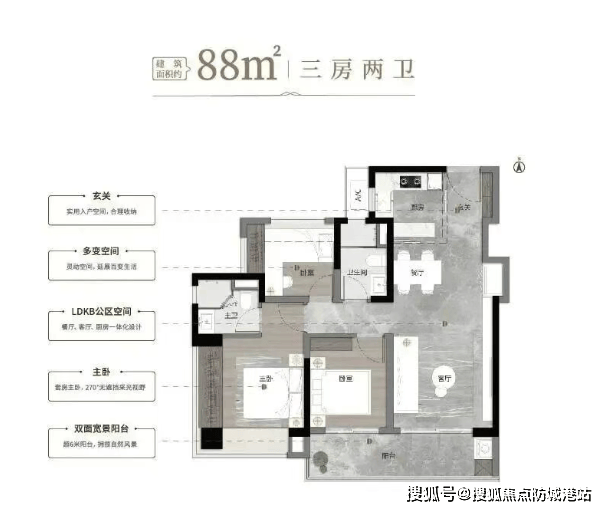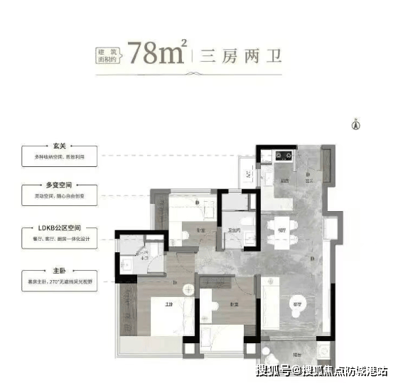 针对首次置业或改善型刚需家庭,项目精准推出建面约79-117㎡的三至四房产品,覆盖多元家庭结构需求。所有户型均采用新规后设计,强调全南向布局,确保采光与通风;阳台、飘窗、花池等空间大量赠送,使得实际使用面积远超产权面积,得房率突破100%,真正做到“买三房得四房,买四房享五房”。