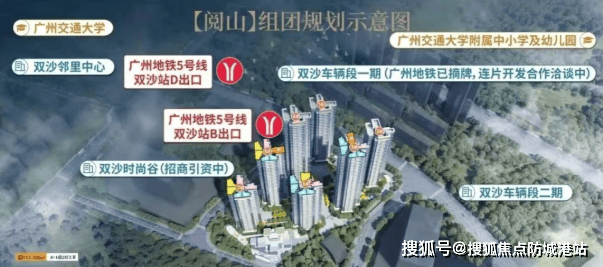 对于通勤族而言,时间就是效率,而这个项目恰好将“快”字做到极致。首开阅山组团距离地铁5号线双沙站B口仅约50米,真正实现“出家门即进地铁口”。乘坐5号线无需换乘,直达珠江新城、金融城等广州核心商务区;同时,项目距离13号线双岗站直线距离不足500米,未来还可通过7号线、4号线实现多线换乘,轻松覆盖琶洲、万博、科学城等新兴产业高地。
