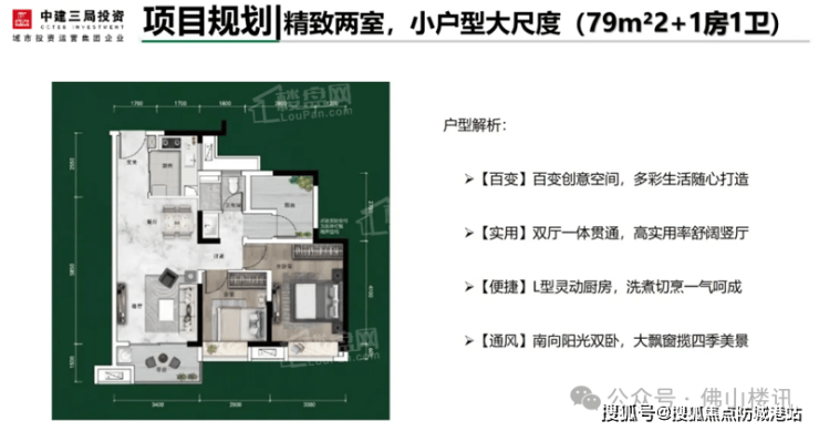 A:非常合理。79-120㎡三至四房,动静分区,干湿分离,大面宽、短进深,采光通风极佳。部分户型还设有可变空间,可根据家庭需求灵活改造。