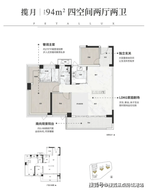 95㎡LDKG一体化+灵动空间,可改茶室、书房;
