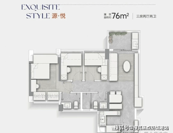 76㎡三房两卫:为当前南沙最极致的小户型产品,功能齐全,总价仅130–140万,极大降低上车门槛;