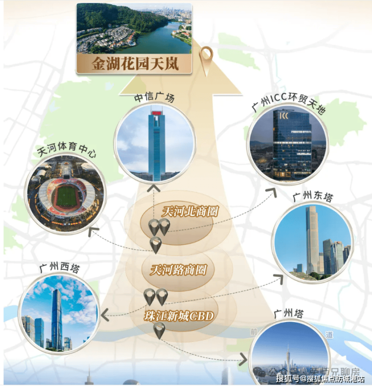 金湖花园天岚占位广州天河北核芯板块,作为区域内唯一在售低密花园洋房项目,其地段价值堪称不可复制。项目依山环湖而建,北望800公顷凤凰山生态屏障,南瞰133000㎡天然金湖浩渺水域,更与珠江新城形成南北呼应的城市景观轴线。从区位来看,这里不仅是地理意义上的中轴节点,更是政商资源汇聚的价值高地——曾吸引31位驻华大使、83位世界500强高管择居于此,如今仍聚集着众多行业领袖,形成极具影响力的精英生活圈。7公里直达天河北CBD的黄金距离,让项目既享受新城发展红利,又兼得自然生态的静谧,成为天河北稀缺的“城市绿洲”。