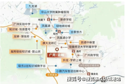 广开云翰位于中新知识城的核心区域,该区域是粤港澳大湾区唯一的中国-新加坡国家级合作项目,被誉为“湾顶明珠”。项目距离最近的地铁站14号线汤村站约2公里,虽然步行不太现实,但通过骑行或电瓶车接驳则十分便利。此外,项目周边有创新大道和永九快速等城市快速路,能够快速连接科学城及天河区,而毗邻花莞高速知识城出口则进一步提升了项目的交通便利性。