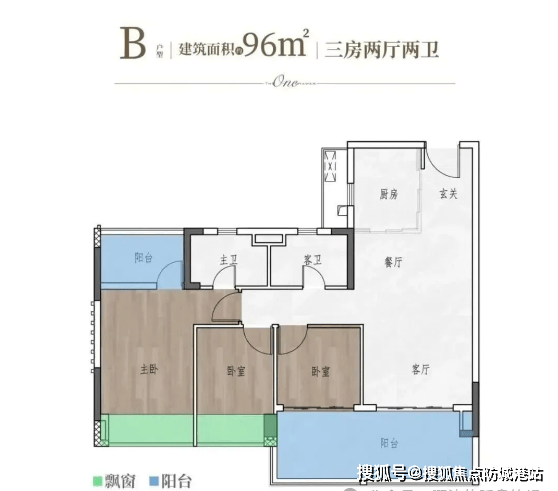 96㎡ 3 房 2 厅 2 卫:成长型家庭优选,舒适度升级