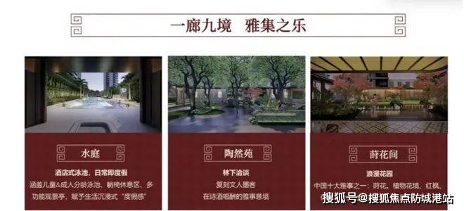 项目注重休闲与生活品质,承袭中华千年造园技艺,打造新中式大雅园境 。一廊九境,约 650 米风雨连廊传承归家礼序 。五进归家,移步异景 。约 4.5 米层高架空层、酒店式度假泳池、运动公园,满足全龄段休闲需求 。甄选名贵树种,四季有景 。社区自带雅奢艺术会所,为高知人群打造专属生活场域 。